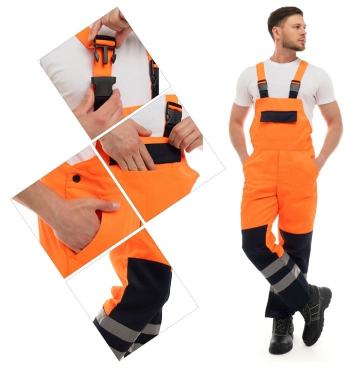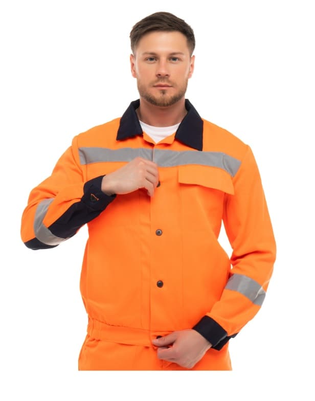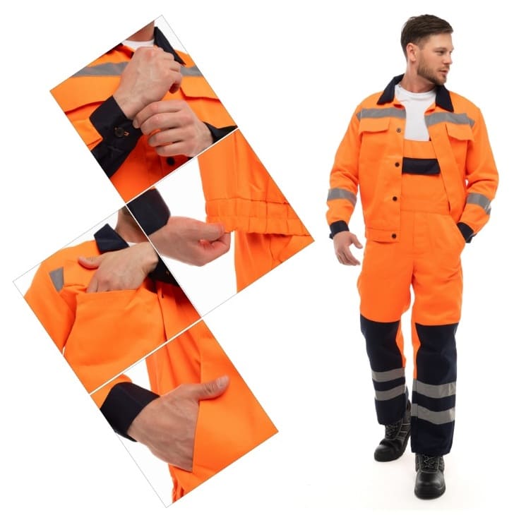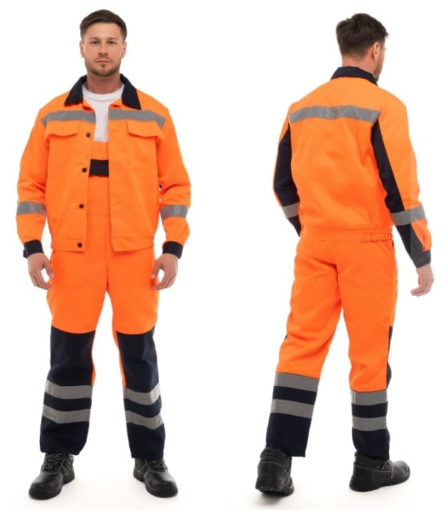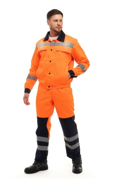 - для безопасной работы сотрудника в местах с плохим освещением на костюме предусмотрена световозвращающая полоса шириной 50 мм.