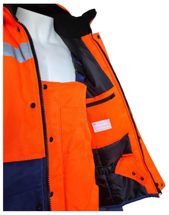 Для безопасной работы сотрудника в местах с плохим освещением на костюме «МЕТЕО» Грета предусмотрена световозвращающая полоса. Ткань верха: «Грета» смесовая, состав: 80% ПЭ, 20% ХБ, пл. 200 г/м2±10 гр./м2, ВО отделка. Ткань подкладочная: «Тафета 190», состав: 100% ПЭ, пл. 55 гр./м2±10 гр./м2 + флис, пл. 180 гр./м2. Утеплитель: «Синтепон»-150 гр./м2, в куртке 450 гр./м2 (3 слоя в корпусе, 2 в рукавах), в полукомбинезоне 300 гр./м2 (2 слоя). Класс защиты - 4 класс; Климатический пояс - IV-й; 2 класс защиты сигнальной одежды повышенной видимости
