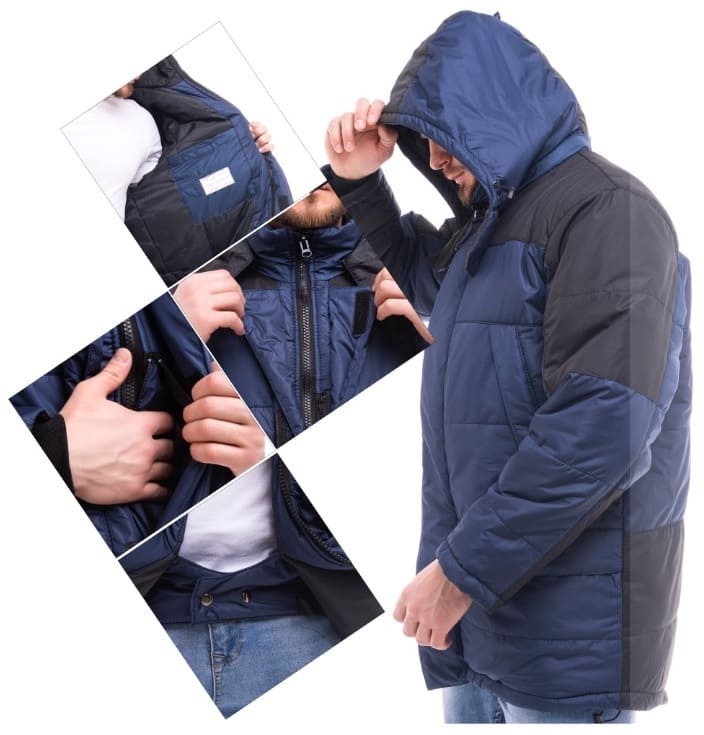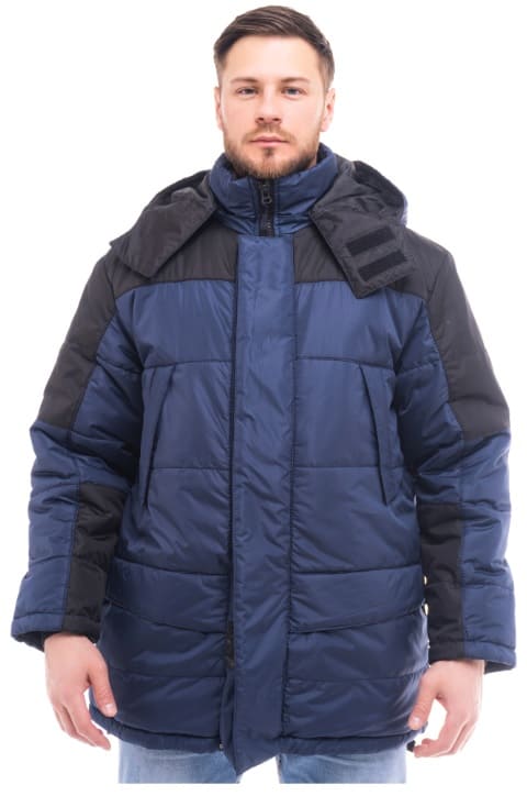 Куртка - удлиненённая, с ветрозащитным клапаном на ленту контакт; - 2-а верхних кармана прорезные; 2-а нижних накладных кармана с клапанами; - центральная застежка на спиральную молнию; - регулировка прилегания куртки по талии и по низу; - ветрозащитная юбка; - съемный капюшон на молнии с регулировкой объема; - манжет в рукавах внутренний трикотажный;
