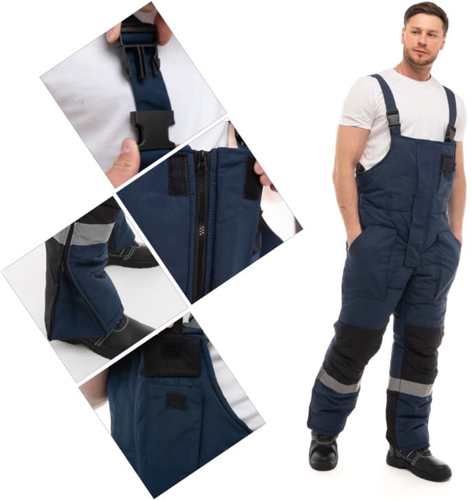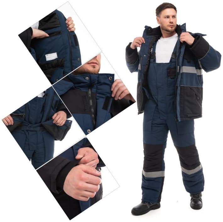 Куртка – с ветрозащитным клапаном с застежкой на липучки и кнопки, верхние нагрудные накладные карманы, - левый клапаном на липучку, правый на вертикальную молнию и карманом для бейджа, нижние накладные объёмные карманы с клапанами на кнопку; - внутренний карман для документов на молнии; - с ветрозащитной юбкой на подкладке; - центральная застежка на спиральную молнию; - манжет в рукавах внутренний трикотажный; - съёмный капюшон с регулировкой объёма по лицевой и затылочной части, с возможностью использования капюшона на каску; - с воротником – стойка, внутренний воротник из тк. Флис; Полукомбинезон - с застежкой на молнию; съёмными бретелями; - с накладным нагрудным полуобъёмным карманом, на передних половинках п/к; - с нижними накладными полуобъёмными карманами с косым входом на передних половинках; - с резинкой ткацкой и шлевками по линии талии; - усилительные накладки в области колен на передних половинках п/к;